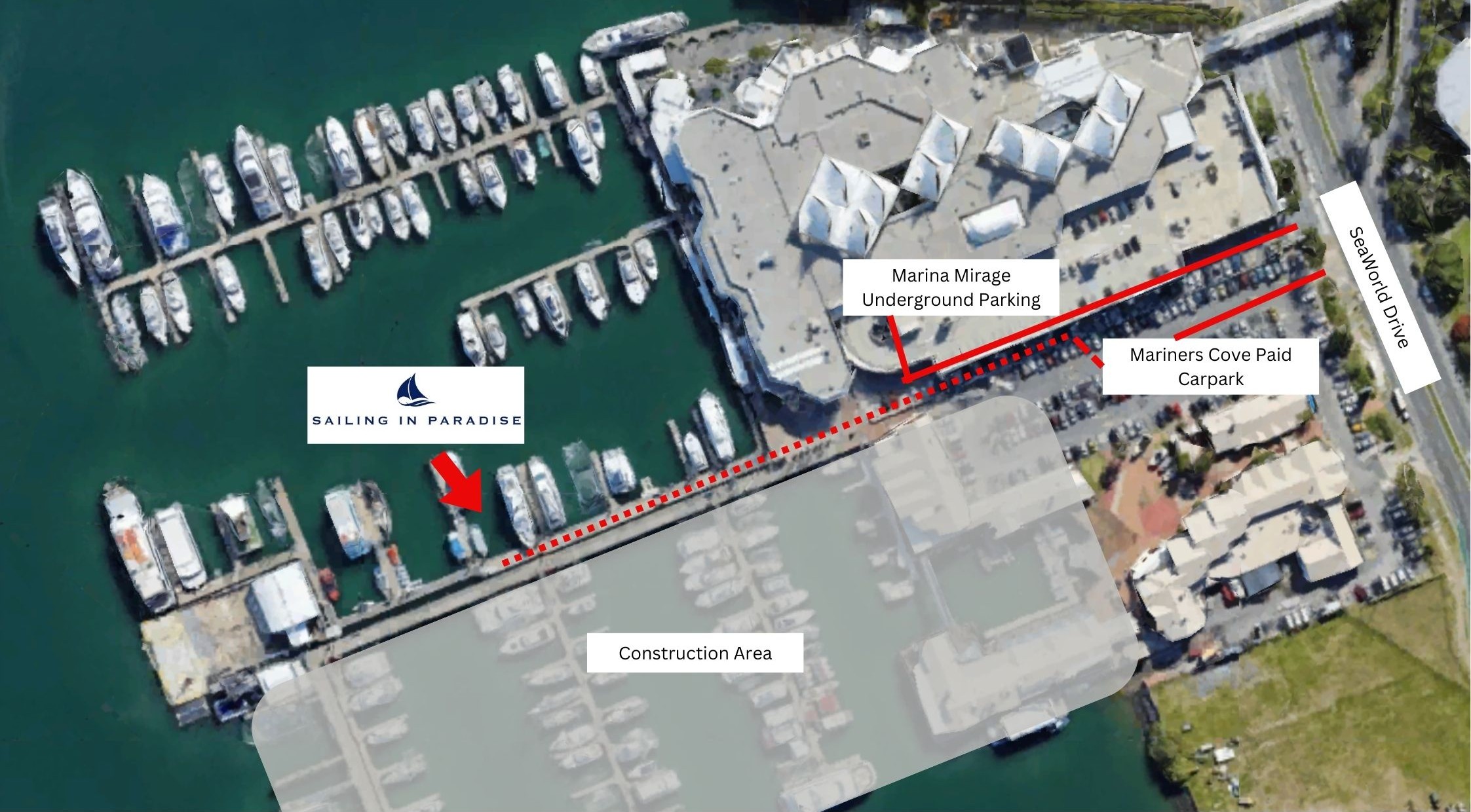 Please find a map below of the current vessel locations. With construction work in the area it is possible that access may change slightly however we have been advised that access to the marina will remain possible at all times.